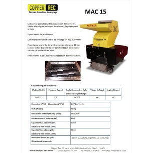 Le broyeur Granulateur type MAC15 broie le plastique, les câbles électriques en cuivre et aluminium mais également le bois.